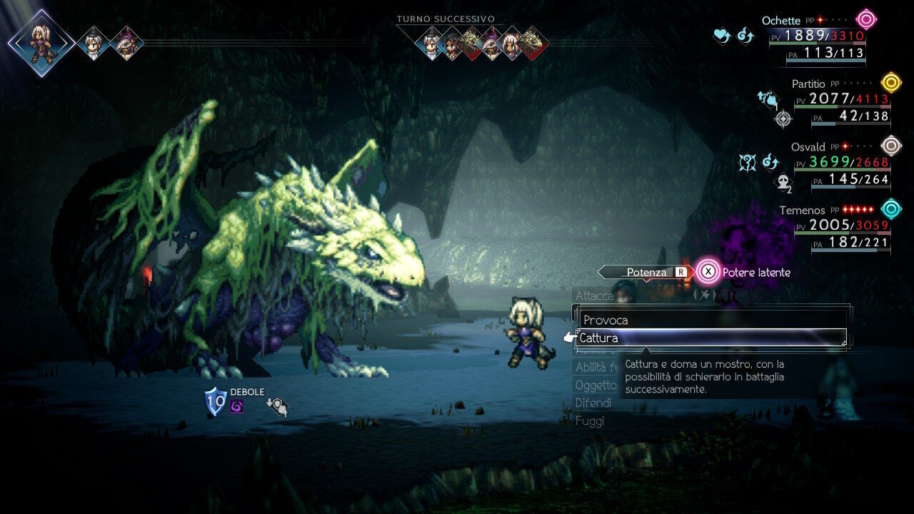 Nelle fasi finali del gioco la sua potenza generale viene adombrata da Hikari, che diventa un autentico ariete da guerra se ben usato, eppure Ochette può mantenere una posizione prevalente proprio grazie alla sua abilità particolare. Di seguito vi elenco alcuni dei mostri più utili da catturare presenti in Octopath Traveler 2.