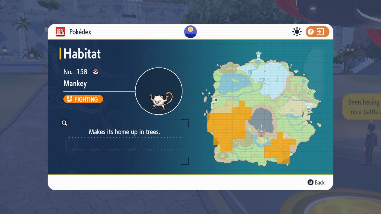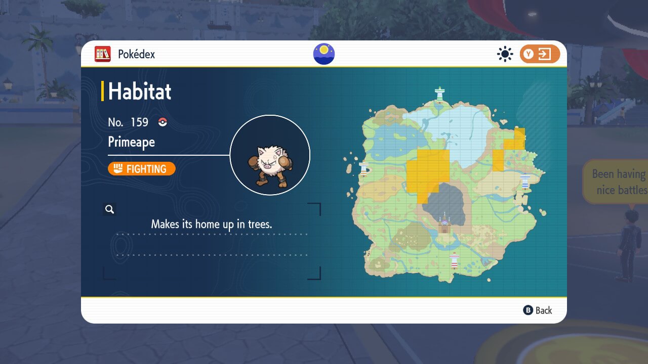 Per ottenere Primeape o la sua pre-evoluzione Mankey, potrete procedere in due modi, il primo catturare Mankey che potrà essere trovato facilmente in una buona parte delle zone di Early Game, sopratutto nelle province a ovest della regione di Paldea per poi farlo evolvere in Primeape al livello 28.