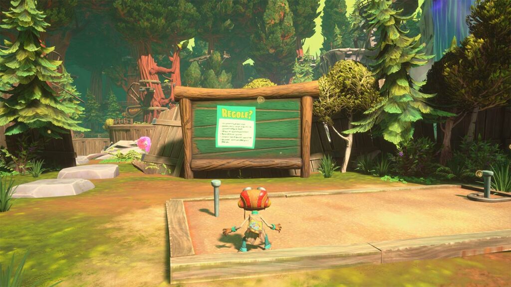 - La prima posizione è molto vicina al campeggio, troveremo Queepie alla sinistra del cartellone con la scritta “Regole?”.