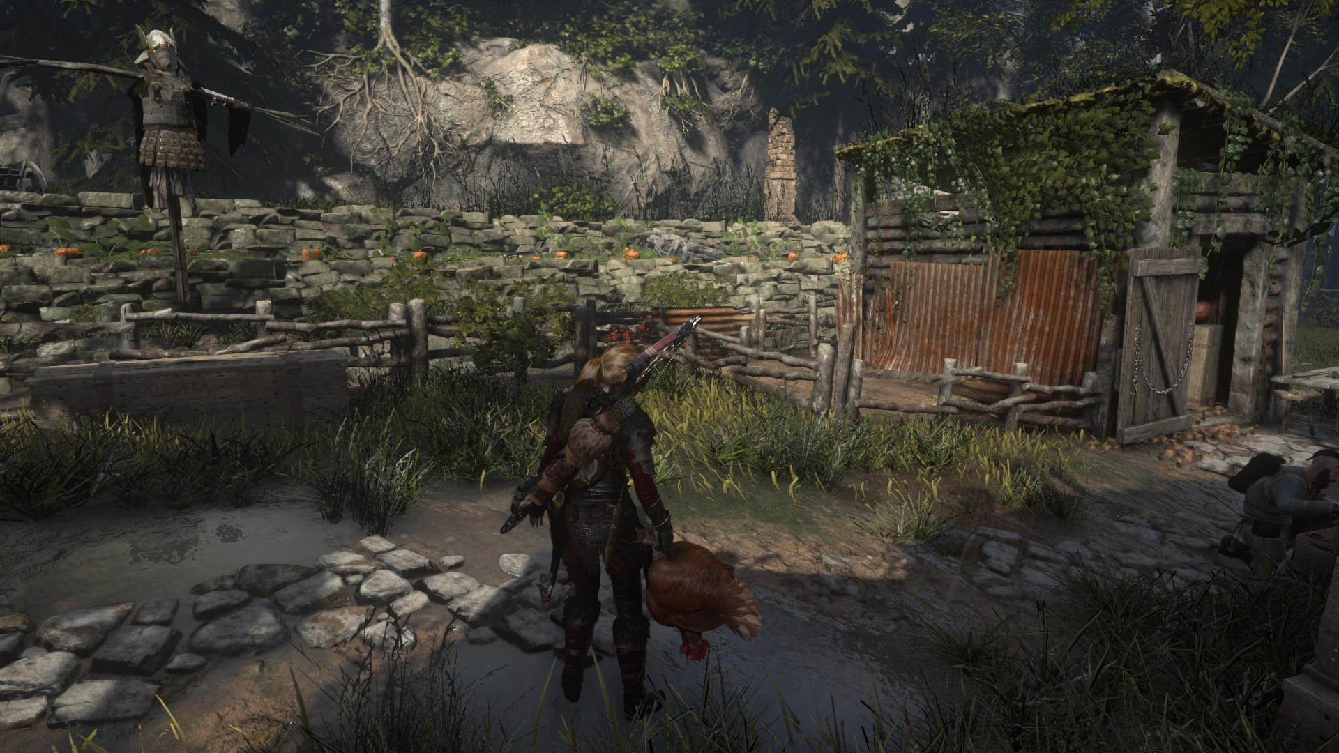 Cattura cinque polli e riportali nel pollaio. Anche questa sfida non è molto complicata e può essere completata in pochissimo tempo. Nel villaggio infatti esiste una recinzione nella quale viene richiesto di riportare (lanciandoli) cinque dei polli dispersi per la mappa. Nel villaggio stesso ve ne sono molti, ma nel caso in cui ve ne sfuggisse qualcuno è possibile recuperarne altri in giro, ma siamo sicuri che non ce ne sarà bisogno. La recinzione in questione è vicina allo spaventapasseri, come indicato nell’immagine in basso: