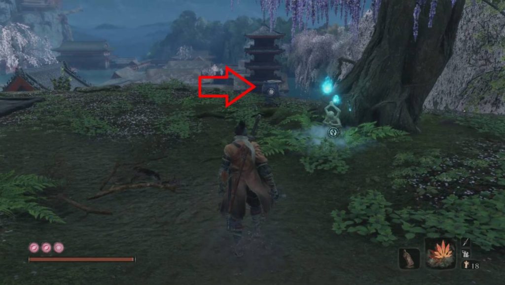 Per ottenere l’ultimo pezzo dovrete seguire alcuni passaggi: innanzitutto quando verrete messi di fronte a una scelta in cima al Castello di Ashina dovrete decidere di restare fedeli a Kuro. In questo modo finirete per raggiungere il cosiddetto Palazzo Sorgente, e sarà proprio in questo luogo che troverete l’ultimo mercante con l’ultimo pezzo di Maschera. Per raggiungerlo non dovrete fare altro che partire dall’idolo dell’Area del Palazzo, e da qui entrare nell’edificio a destra per poi uscire subito a sinistra; da qui potrete poi costeggiare l’edificio procedendo sulla destra fino a raggiungere un punto in cui, usando il rampino, potrete entrare in una piccola caverna sopraelevata. Procedendo al suo interno raggiungerete il Nobile Vaso Koremori (ed il relativo idolo), il quale venderà l’ultimo pezzo per 12 scaglie di carpa.