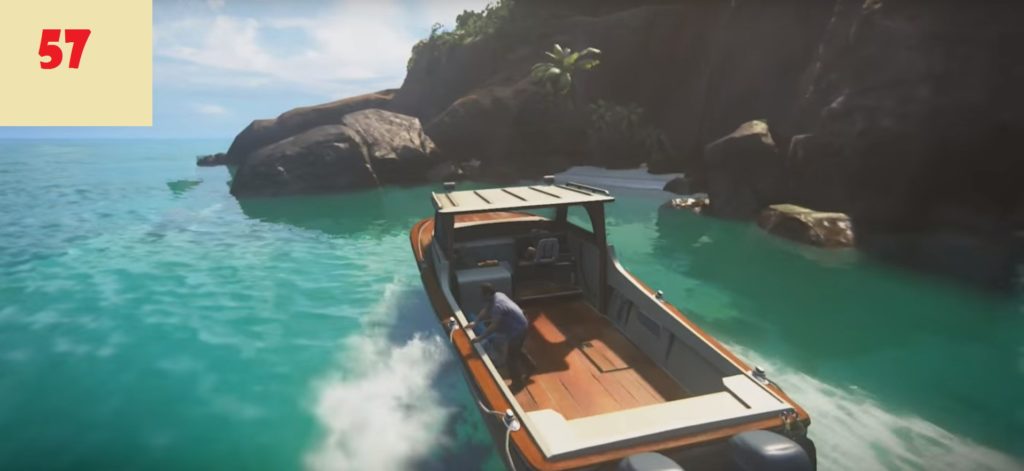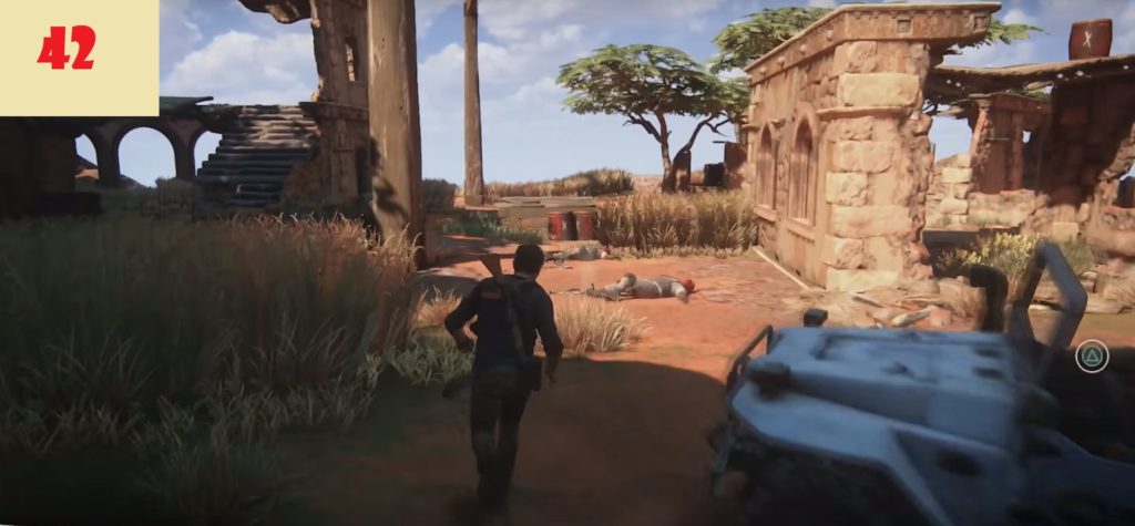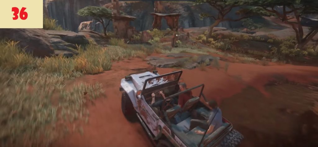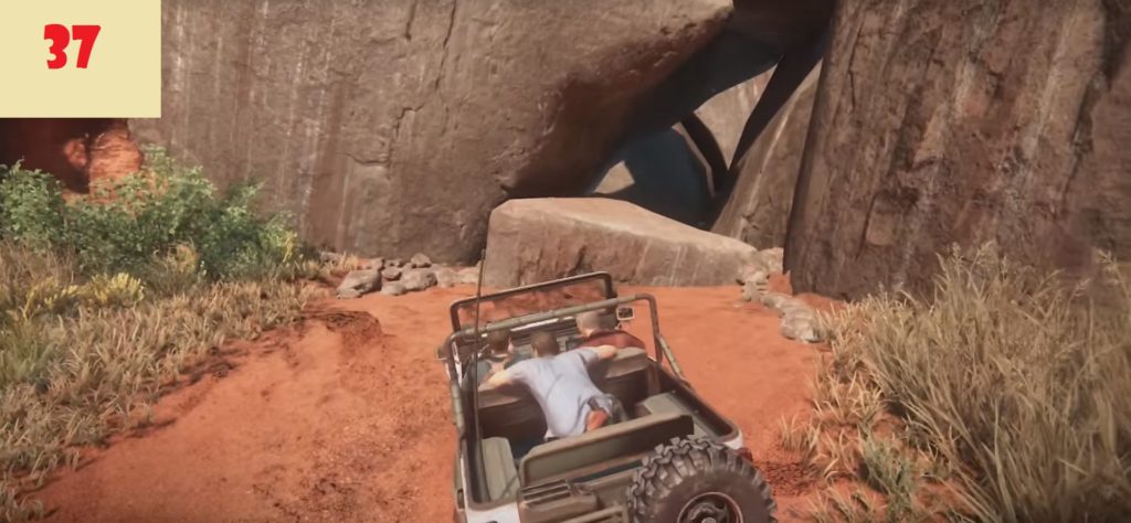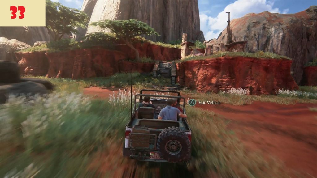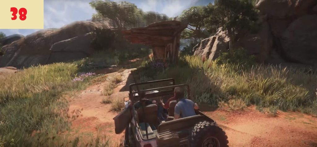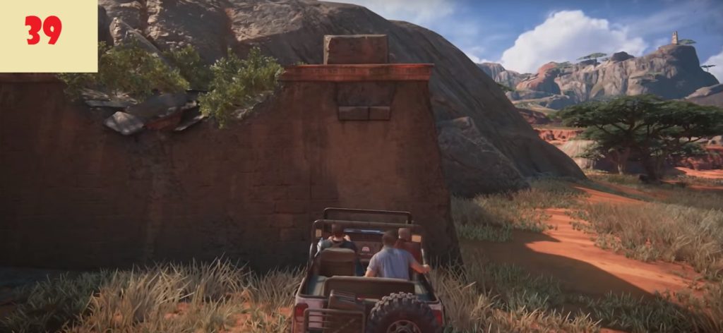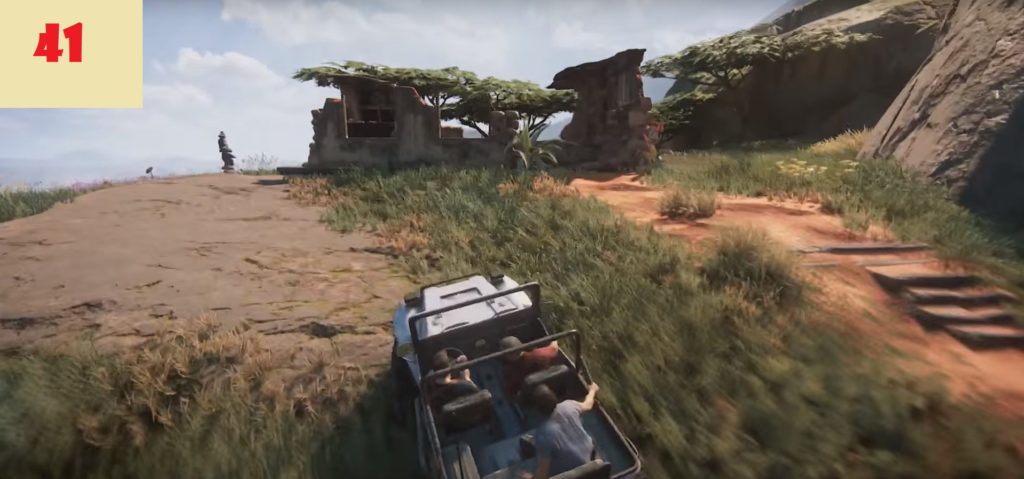 Dopo la breve scena dei camion Shoreline sullo sfondo, potrete notare un gruppo di ruderi poggiato su un gruppo di imponenti macigni. Raggiungeteli e parcheggiate il fuoristrada vicino allo spigolo alla vostra destra, usandolo così come appoggio per scalare i ruderi. Sul tetto troverete dei barili esplosivi vicino ad una lastra di legno. Fateli esplodere ed entrate all’interno. Troverete il tesoro poggiato su un tavolo.