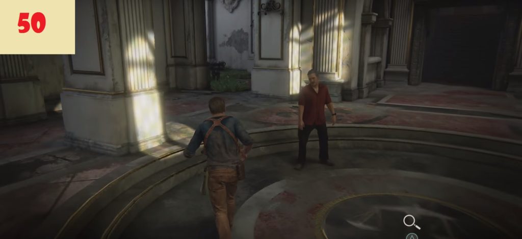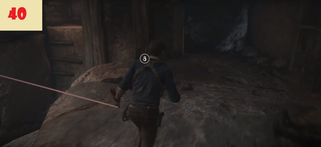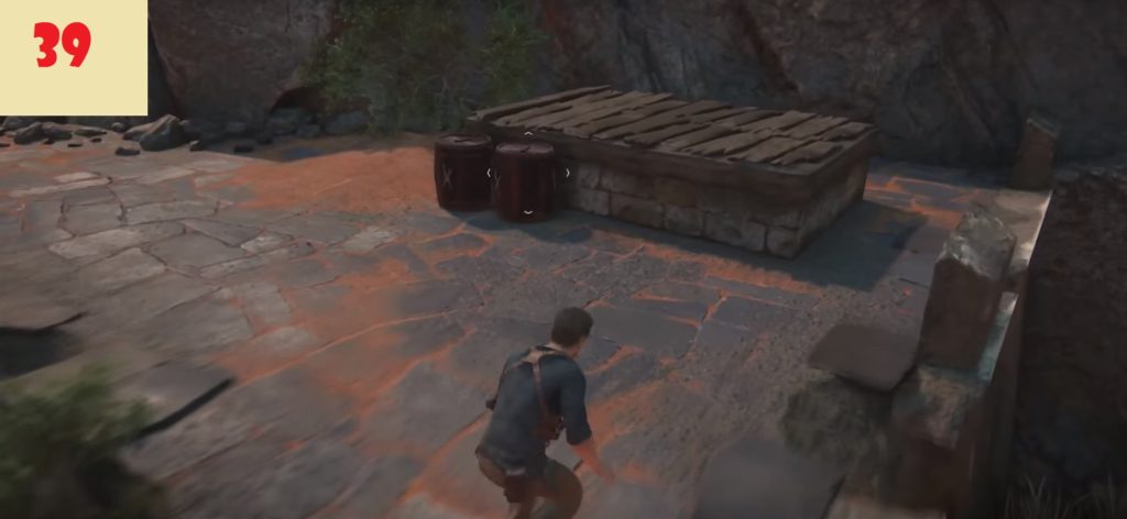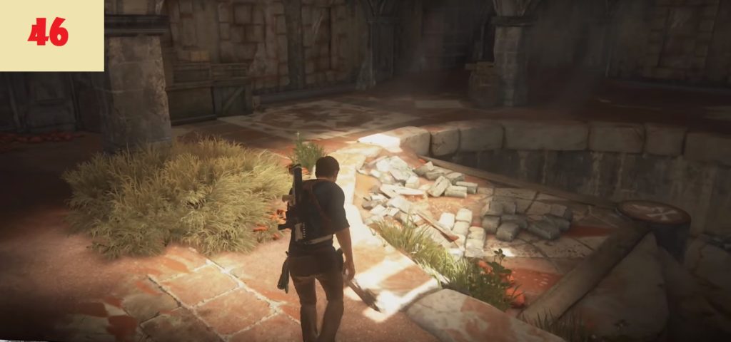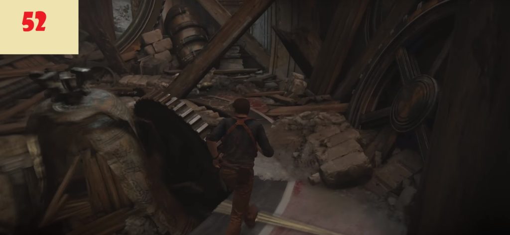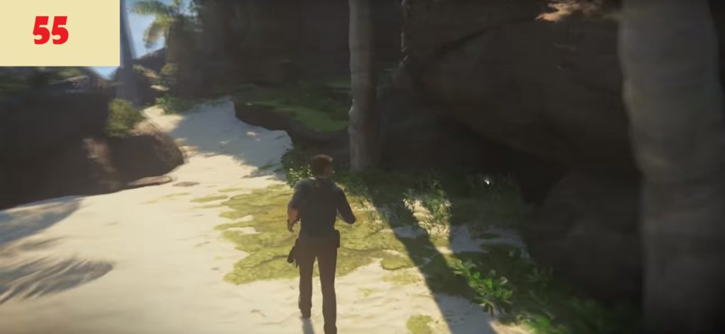 Dopo essere saliti sull’altura col ponte fatto crollare da Sam, andate verso la piattaforma successiva. Non procedete a sinistra ma a destra, trovando una stanza buia con dentro il tesoro.