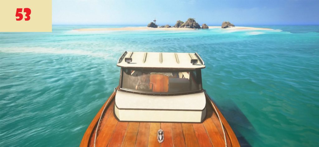 Andate con la barca verso la destra dell’isola principale e raggiungete la striscia di sabbia vicino ai ruderi di un veliero. Lasciatevelo alle spalle e andate in linea retta, per raggiungere una spiaggia: andate nell’entroterra e troverete delle casse, insieme al tesoro.